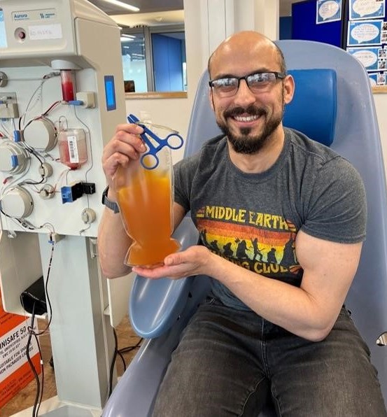 After his first blood donation, he was invited to consider donating plasma. Given the care Asher had received, David felt he could not refuse helping others in the same way.